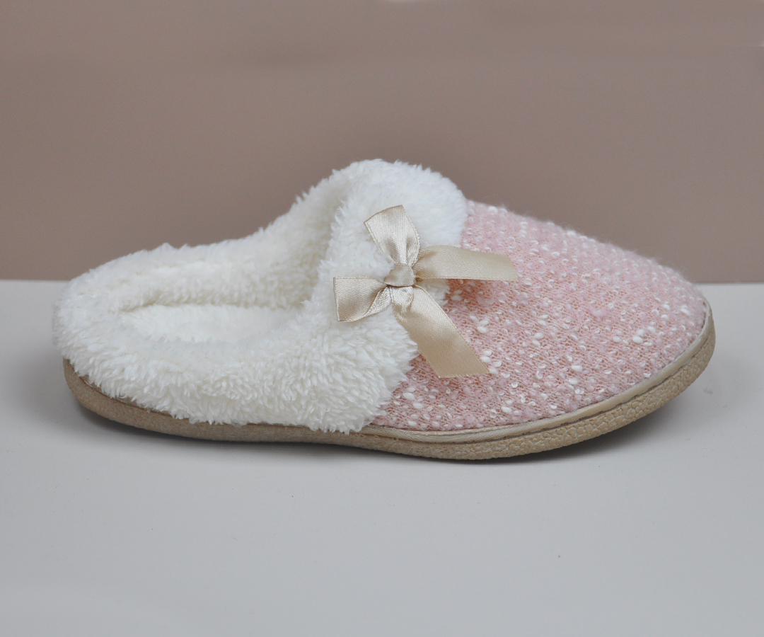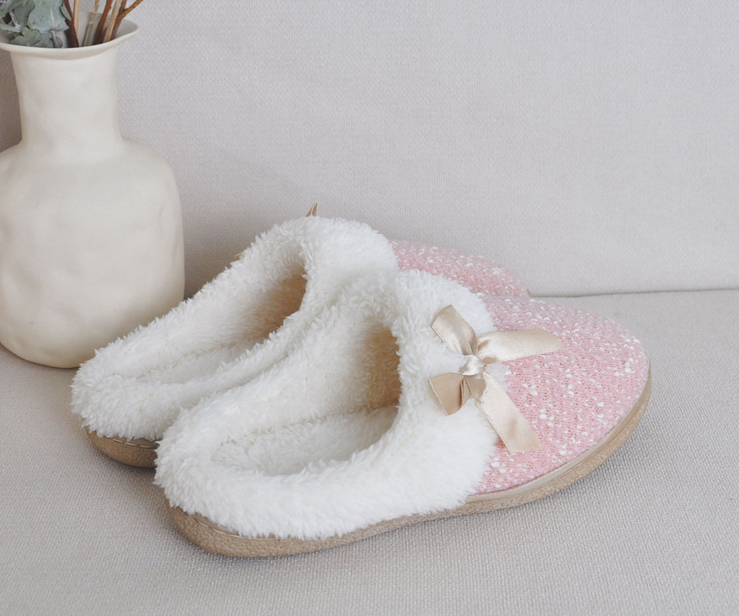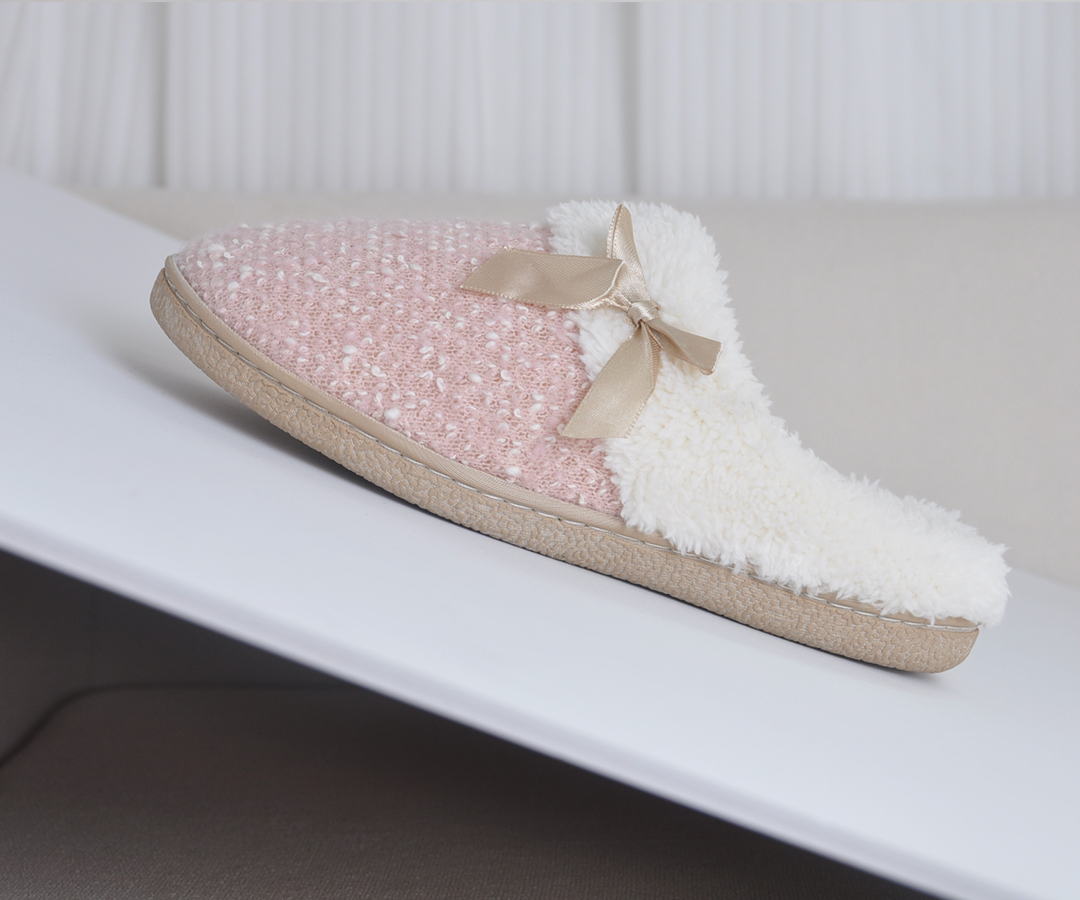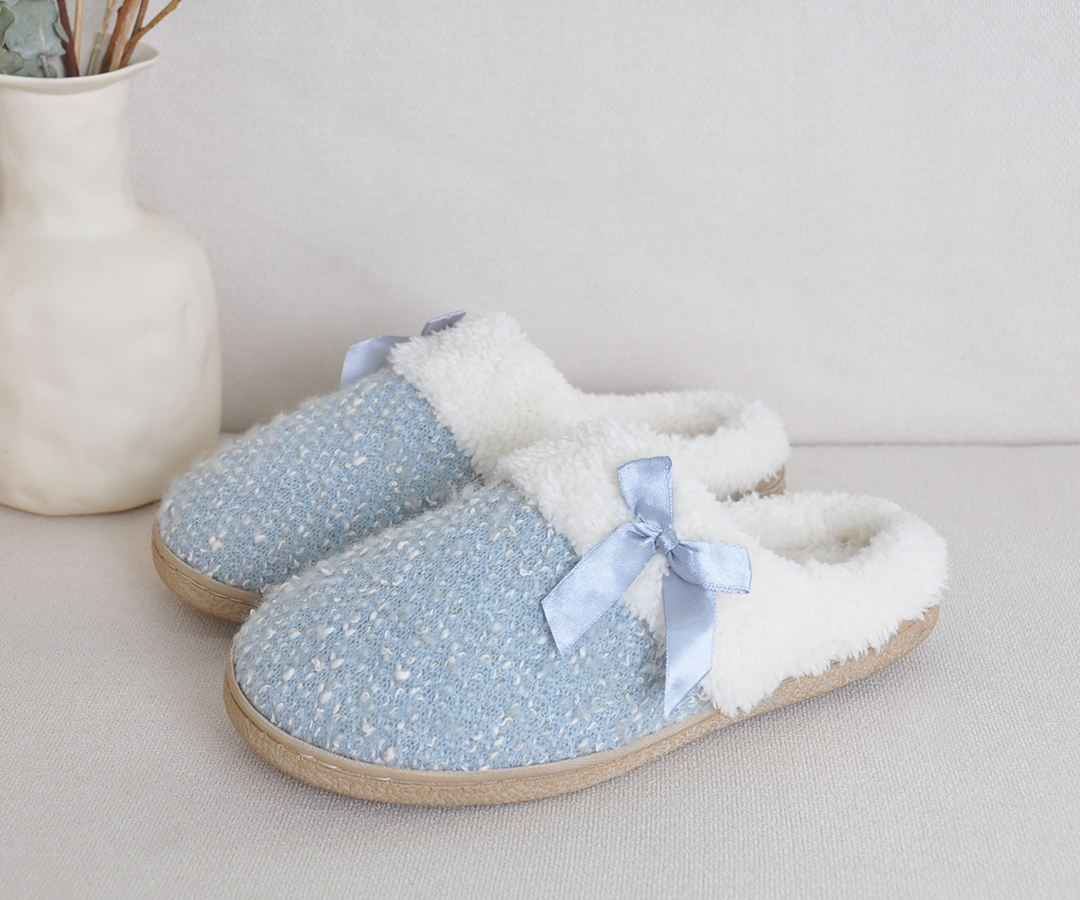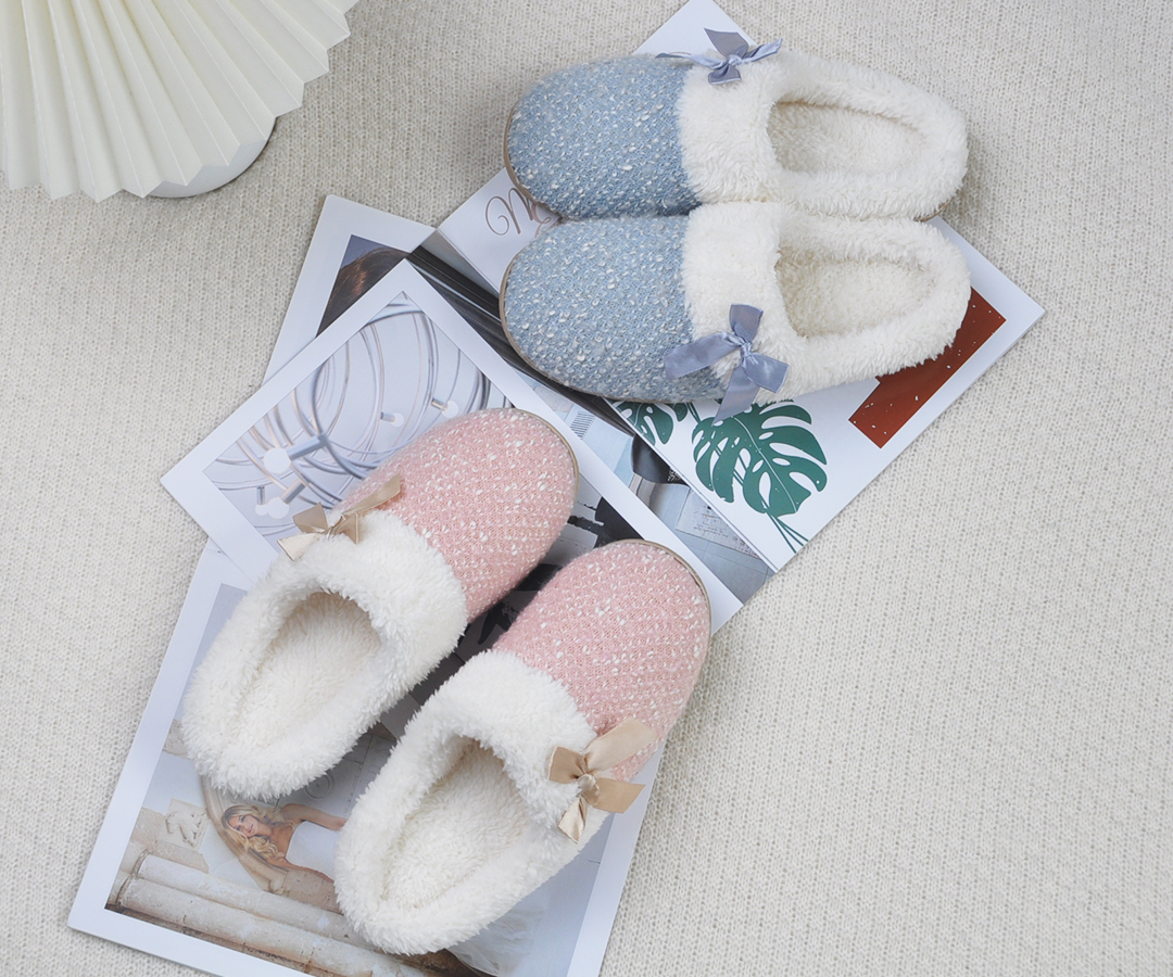 蝴蝶结毛绒欧美家居拖鞋 保暖防滑舒适包头棉拖